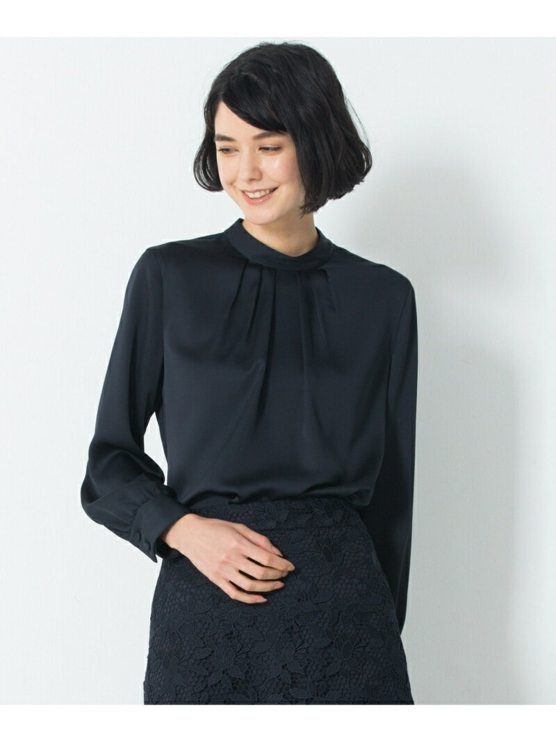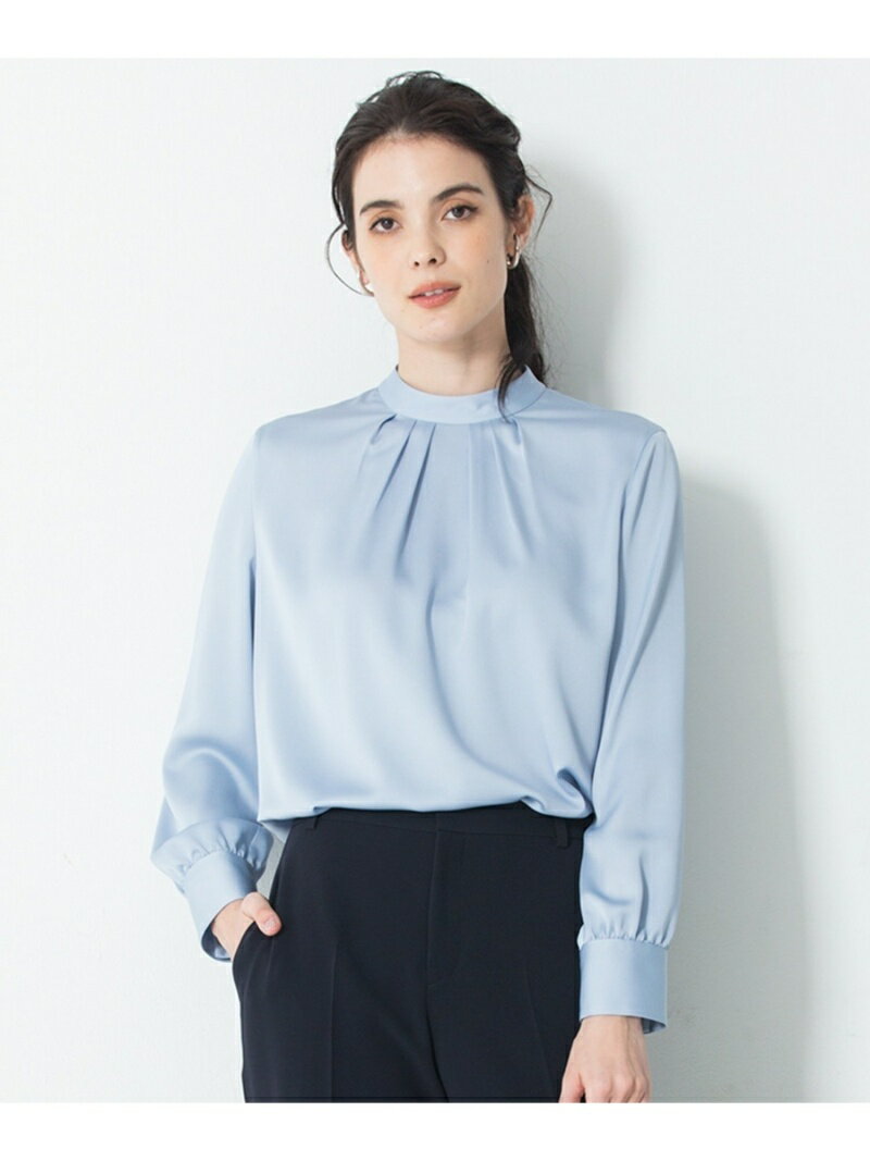 23区(ニジュウサンク)【洗える】サテンタックハイネックブラウス2020SSハイネックデザインが今っぽい、シワになりにくい&洗えるブラウス■デザインスタンドカラーがきちんとした雰囲気のデザインブラウスです。