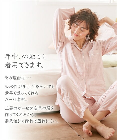 やさしい肌触りの綿100%ガーゼ素材を3枚重ねに。